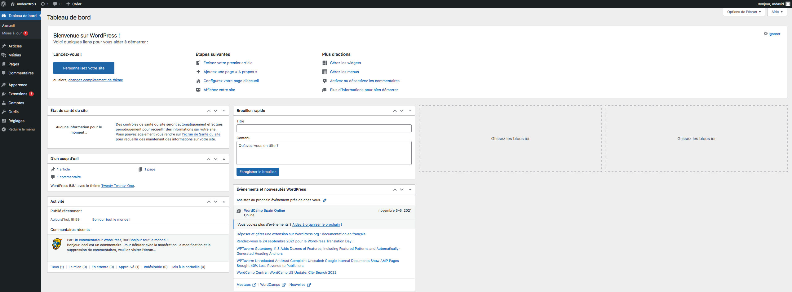 For a future project, it was essential that I dive into the discovery of the Wordpress tool. Having never used this tool, I had to start training myself on the basics and the use of Wordpress (latest version 5.8.1).